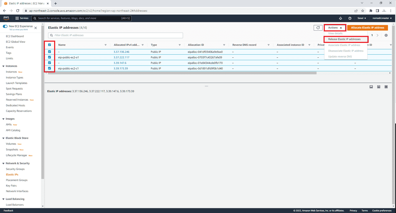 13. Elastic IP 삭제(Release)