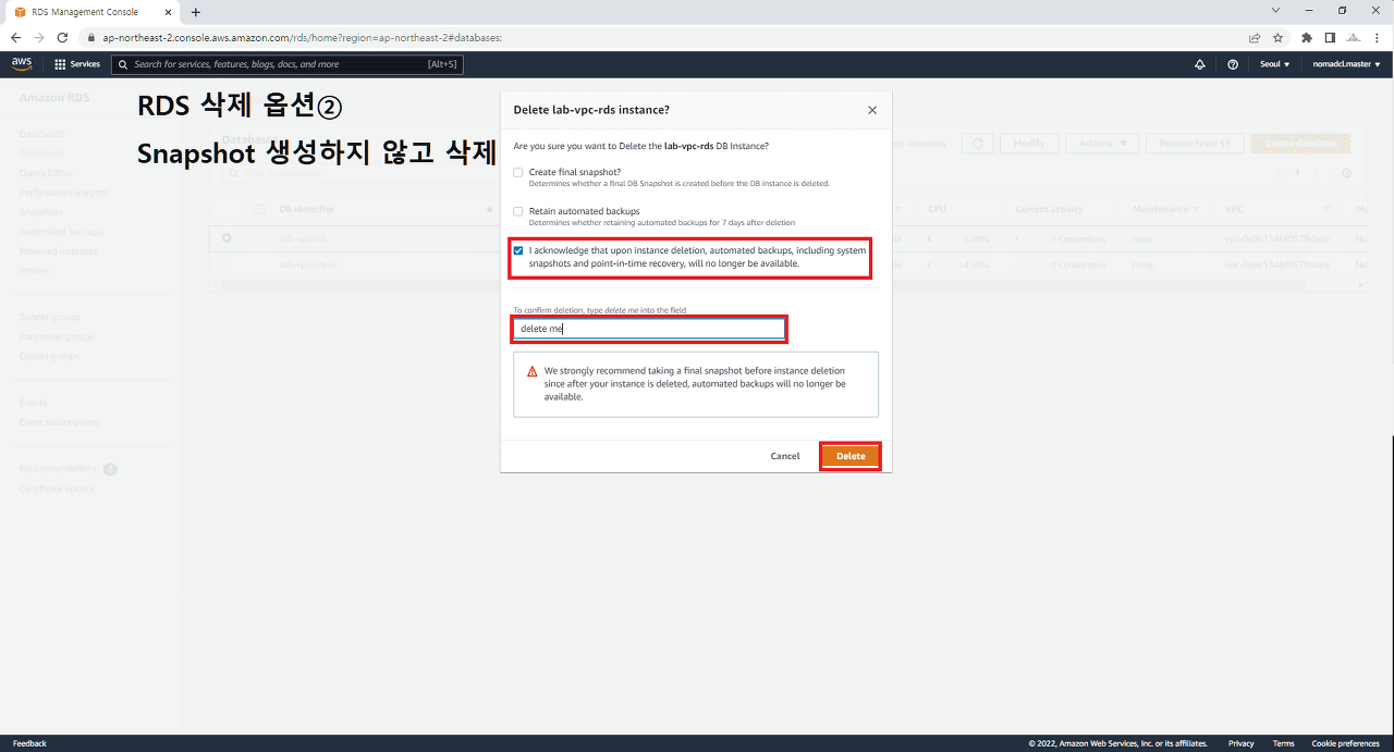 6. RDS 삭제 (원본, Read Replica)