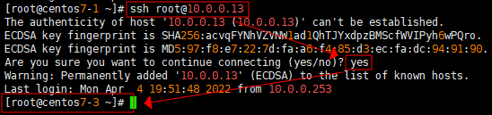 - 첫번째 서버에서 세번째 서버로 키 기반 접속을 시도하게 되면 첫번째 서버는 개인키를 가지고 있고 세번째 서버는 공개키를 가지고 있기 때문에 키 기반 원격 접속이 되는 것을 확인 할 수 있다.