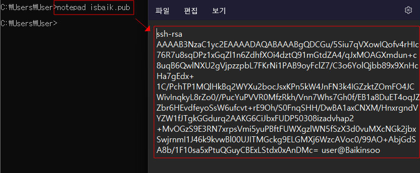 - 다음과 같이 공개키와 개인키가 복사된 것을 볼 수 있다.