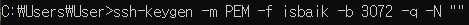 -m : key의 형식을 지정 (현재 PEM 방식으로 지정했다.)